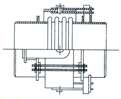 該補償器與角向型不同處在于它有一個萬向環(huán)在萬向環(huán)的周向有二對互相垂直的鉸鏈結(jié)構(gòu)。因此它能吸收任意平面的角位移。同樣吸收位移時需二個或三個組合使用,不允許單個使用。